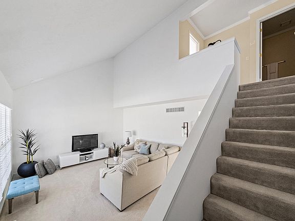 Stylish, move in ready, main floor master bedroom-great room floorplan on quiet street in The Meadows. Newer appliances, hardwood flooring. Main floor also has flex space currently used as family room but could be formal dining. Master bed and great room with vaulted ceilings. Dinette area opens up to large deck on this tree lined, fenced lot with shed. Upstairs has two beds, bath and small loft area. Finished basement with full bath, large rec room space and laundry. Very nice.