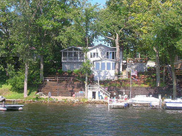 Nice lake home on 85 feet of prime Big Long Lake frontage. 3 bedrooms, 2 full bathrooms, 28x16 great room w/FP, dinning room w/FP, kitchen w/ all appliances, screened porch, deck and even a patio at lake side. Big lawn with tiered landscaping on lake side of home. New on-demand water heater, efficient water boiler heat, wall A/C and washer/dryer. Big 3 car garage on back lot w/ plenty of storage for all your lake toys. Also includes 12 section pier, swim raft, 2 shorestation boat lifts, 20 ft pontoon w/25hp Johnson, grill, patio table, chairs, and lots of other lake items. At $334,500 it is only $3,935 per foot of frontage.