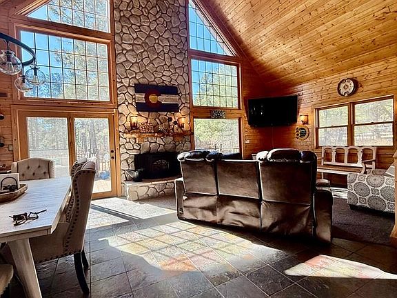 Welcome Home to your stunning Mountain Retreat! Situated on 1.4 acres, this beautiful home offers the perfect blend of comfort, convenience, and nature's beauty! The spacious 3 bed, 2.5 bath home features coffee bar in the dining room, a luxurious master bathroom with heated floors and oversized walk-in closet. Multiple heating options with 2 pellet stoves, propane heating with furnace and/or new electric thermal storage heater as well as Solar Panels. An expansive attached 2 car garage with additional storage, a 30x25 detached garage/RV carport, and a storage shed. The large outdoor deck is perfect for entertaining or unwinding while soaking in those mountain views, after using your outdoor hot tub! This beautifully updated home is an ideal retreat, and just 30 minutes from Pueblo, CO and only a short drive to Colorado City, CO.