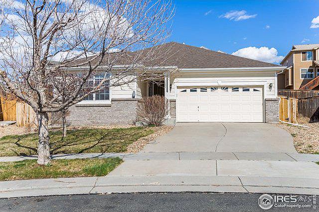 Plenty of flexibility spaces to gather and/or to scatter. Featuring large rooms, open layout and mountain views. Located across the street from Second Creek open space & trail. Enjoy the pool, playground, parks, trails and nearby Buffalo Run golf course. Restaurants, shopping & services just to the west at Reunion Marketplace Center. The living/great room is large enough to arrange and rearrange for any occasion. The kitchen is loaded with cabinetry and counterspace. And the wood flooring brings class and cleaning ease. The expansive master boasts a large walk-in closet and a private bath. And it looks out onto the backyard. The second bedroom has a large bay window. The third/front bedroom (winning the prize for best views!) would also make a great home office. The fully fenced & terraced backyard is ready for anything, with established landscaping and afternoon shade.