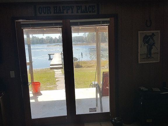 Fully furnished lakefront home - Move in ready. Owner financing available! Fish from the dock or enjoy the sandy swimming area for your outdoor gatherings. Large living room with french doors to the wrap around porch overlooking Pegram Lake - Great space for entertaining. Roomy kitchen with stainless steel appliances and abundant cabinets. Dining room with french doors, walk-in closet in both bedrooms, step-in shower in both bathrooms, tankless gas water heater. Carport plus 20x22 workshop with electric. Conveniently located between Ocala, Palatka and Gainesville.