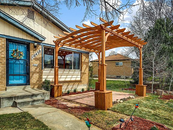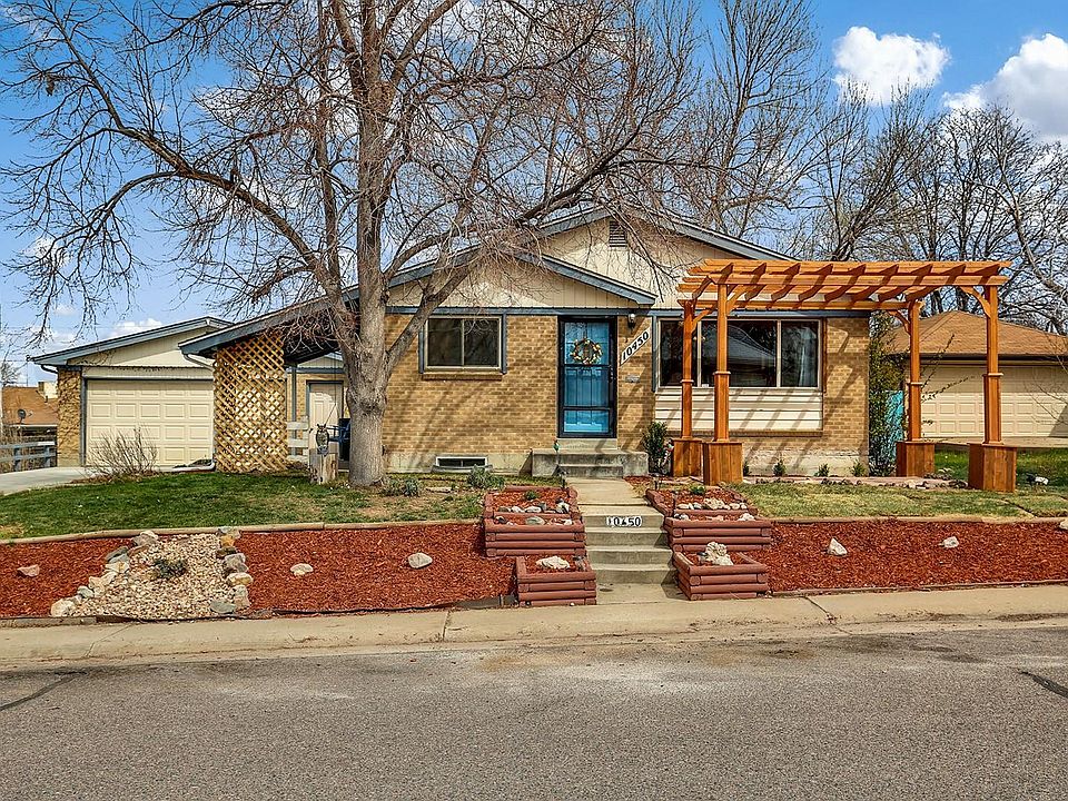 MID CENTURY BRICK offers an Incredible opportunity and location! Charming 4 bedroom, 2 bath 1959 brick home with fully finished basement and amazing exterior spaces! You'll be greeted by a beautiful landscaped front garden with a pergola and flagstone patio. Bright open layout with refinished hardwood flooring and fresh paint! Spacious kitchen, updated bath & new carpet in Master and secondary bedroom. Large laundry room with workspace, storage & epoxy flooring. Spacious family room with fireplace hookup and brick wall detail. Two guest bedrooms and one bathroom complete the basement. Oversized, detached 2-car brick garage with new driveway, covered back patio and covered side porch. 11 x 14 Storage Shed with electricity and double entry doors. Enjoy leisurely walks to Grant Park and Lambertson Lakes Open Space. Minutes to Northglenn Marketplace, King Soopers and Cinebarre! Quick access to 104th Ave and I-25! This property will sell fast...see it today! GREAT VALUE!