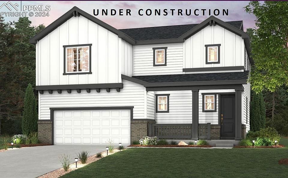 The Frisco floor plan offers a spacious and open-concept layout, with 9 ' Main level ceilings, luxury vinyl plank flooring in the main living areas. Luxurious kitchen 42 inch upper cabinets, grey shaker style cabinets, granite countertops, large kitchen island, with stainless steel gas appliances , perfect for both relaxation and entertaining. The sprawling great room seamlessly connects to a beautiful kitchen and dining area, providing ample space for gatherings. Enjoy the convenience of direct backyard access from the dining area, allowing for easy indoor-outdoor entertaining. Upstairs, you'll discover two well-appointed secondary bedrooms situated on either side of a generous loft, providing versatile space for various activities. The second floor also features a large primary suite complete with a private bathroom and a sizable walk-in closet, offering comfort and privacy. Part of the popular Rolling Hills Ranch planned community, in Meridian Ranch, means an array of activities at your convenience. Enjoy community-inspired amenities like an outdoor pool with beach entry, quick access to the award-winning Antler Creek Golf Course, and Meridian Ranch's 42,000sf rec center with year-round indoor pool with water slide, a gymnasium w/free weights and cardio, and basketball, pickleball, and volleyball sports courts. Part of the well-respected Falcon School District 49. With direct access to Highway 24, Colorado Springs is only 20 minutes away providing convenience to activities and iconic landmarks. Hotspots like Pikes Peak, Garden of the Gods, Homestead Ranch and Falcon Regional Parks are right nearby as well as authentic dining and shopping. Quick drive to air/space force and army bases and a straight shot to I25.