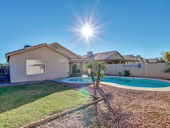 Cool off in the pool of this lovely single-story home near the Camelback Ranch Stadium (home to the Dodgers and the White Sox during spring training!). In the kitchen, you will see all-black appliances and a sunlit dining area with large windows. Down the hall, the master bedroom features a full ensuite bathroom and a walk-in closet. Out back, run around on the grass lawn or splash around in the private pool! Upgrades include new interior paint. Near Dust Devil Park, restaurants, and a Walmart Supercenter. Home comes with a 30-day satisfaction guarantee, 180-point inspection and one-year warranty. Terms & conditions apply. This home will be eligible for FHA financing on February 14, 2017. Open House: Mon-Sun, 6am-9pm