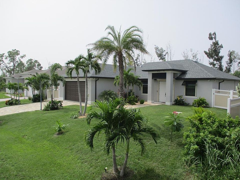Current price of $499,900 is ONLY GOOD TILL 3/13/24 - ESCAPE TO YOUR OWN PRIVATE OASIS in this "Turn-Key" home with unrivaled attention to detail, this custom residence built in 2021 is a lavish showcase. Located in the popular community of South Gulf Cove, this Fully Furnished Home where every detail has been attended to in this residence, including extras such as a Propane and Gas Generator plus 3 Solar Backup Batteries for use during Power Outages. Pride of ownership is evidenced throughout the open floor plan, from the quartz counter tops and stainless-steel appliances in the kitchen to the window treatments and lighting upgrades. The Center Island in the kitchen enables the cook to be part of the party. Relax and smile as you watch friends and family enjoy the saltwater pool, covered alcove seating, and barbeque area, the perfect space for easy living or elegant entertaining overlooking the lushly landscaped fenced yard creating a perfect private sanctuary and the ultimate in resort style living. The Master Bedroom suite has views to the lanai and pool area, huge walk-in closet, as well as a backup Samsung Mini Split-secondary air-conditioning unit, ensuite bathroom with double-sink vanity and walk-in shower. The spacious secondary bedrooms share the guest bathroom with large vanity and tub-shower combination. The Guest Bath has easy access to the pool. Outdoor security features include a 10-camera video recording system with day and night vision capability, motion sensors and outdoor lighting, all windows have either electronically operated storm shutters or accordion-style shutters. The paver driveway has a portable shade canopy with solar lights. The garage features a foam insulated heavy duty garage door and has a separate air conditioner. The attic is double insulated, has plywood floors providing additional storage and has its own exhaust cooling fans. Located in South Gulf Cove between Boca Grande and Englewood Beaches, this beautiful fully furnished home is a gem!