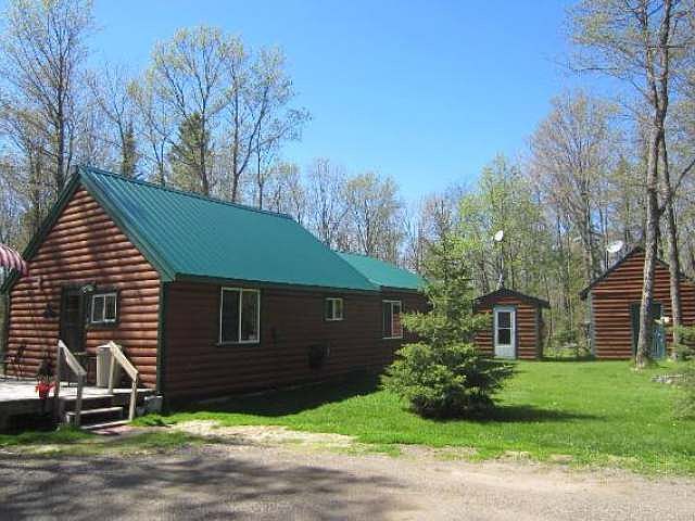 Charming 2 bd home privately located on 40 prime, secluded acres! This property is the ideal weekend get-away or perfect remote residence! The land is loaded with hardwoods, thick pines, and offers many private trails. There are 5 permanent hunting blinds included; all of which have produced "bragging rights" of trophy deer and bear! This gem is located off a dead end road, with a long winding driveway leading to the home. The home features large beams, Norway pine T&G walls, hickory wood floors and a cozy Vermont Casting gas stove. There is an open concept living area, large kitchen with many wood cabinets and ceramic tile countertop. 2 bedrooms, full bath, laundry area and large utility room complete the main level. Upstairs the loft offers additional sleeping room for guests and overlooks the great room. There is a new 24'x30' garage, a sauna building and storage shed. All located with direct access to the snowmobile and ATV trails, near many lakes, and ski hills!