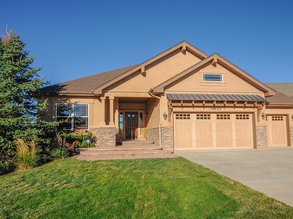 Stunning 5 bed home in the perfect Colorado Golf Lifestyle location! Situated on Hole #11 of Antler Creek Golf Course, this gorgeous home boasts breathtaking panoramic views of Pikes Peak and the Rocky Mountains! This home shows like a model and you will fall in love with all the attention to detail throughout! The main level features an open and spacious layout with huge family room with fireplace and picturesque mountain views, beautiful kitchen complete w/granite counters, island, stainless appliances, double in-wall oven and walk-thru to formal dining room. Sunny breakfast nook walks out to BBQ deck overlooking the golf course and front range! Tucked away in the quiet back of the home is the large owners suite w/walk in closet, 5pc master bath and VIEWS! This level also has a full laundry room, full hall bath and 5th bed/library! The basement has been fully finished to include a huge family room with full wet bar, 3 more bedrooms, full bath, storage rooms and walks out to a partially covered patio and meticulously maintained and fully landscaped rear yard and attached oversized 4 car garage! Conveniently located on on the golf course, minutes from schools and military bases!