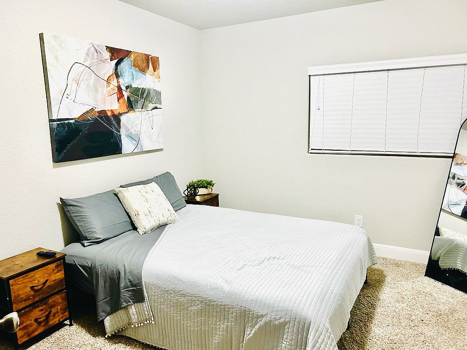 This 1-story home offers a California kitchen with a breakfast bar that opens to a casual dining room and family room. Neighborhood community includes community pool. Shared spaces include the kitchen, pantry, dining room, living room, and laundry room fully equipped with washer and dryer available at no additional cost. Room-for-rent includes a furnished private bedroom with privacy door and walk-in closet. Room is furnished with SmartTV, queen sized bed, two (2) nightstands, and dresser. Next to the room is a private bathroom with tub/shower combination. Maximum Occupancy: 1 person (no exceptions). Utilities included: water, electric, trash pick-up, yard maintenance, AT&T Fiber Optic high-speed internet, and streaming services. Only 5 miles to The Forum shopping/dining, convenient to Fort Sam, Lackland & Randolph AFB, plus the Riverwalk & the Alamo. Known for their energy efficient features, Meritage homes help you live a healthier and quieter lifestyle while saving on utility bills. Only accepting mid-term and short-term leases at this time. Security Deposit and first month's rent due with lease. Pets Allowed with $100 non-refundable deposit per pet. $30 pet rent per month. All Utilities are included. Must have no previous history of evictions and no late rent/mortgage payments within the last 12 months.