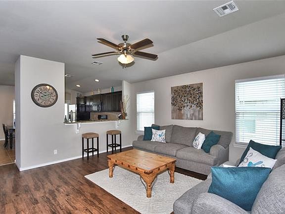 Charming 3 bed/2 bath home in quiet neighborhood in Jenks West School District. Home features huge master bedroom with attached bathroom and two master closets, large eat-in Kitchen and designated office with closet. Neighborhood has large pool, playground, dog park and two stocked ponds with walking trails.