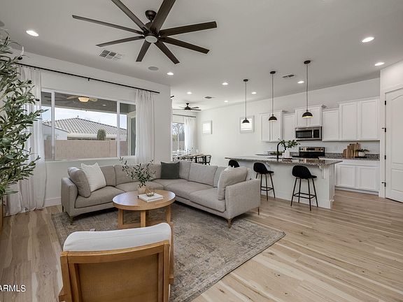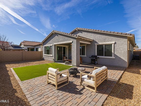 Welcome to your dream home with amazing curb appeal and an array of modern upgrades! As you approach, you'll be captivated by the stunning exterior and welcoming atmosphere. Step inside to discover a spacious living room bathed in natural light and equipped with surround sound, creating the perfect space for relaxation and entertainment. The kitchen is a chef's delight, featuring modern pendant lights, granite countertops, white cabinets, a stylish black faucet, and ample storage space. In the primary suite, you'll find an abundance of natural light, dual vanities, black fixtures, and a luxurious super walk-in shower. A walk-in closet provides plenty of storage, while black tile accents add a touch of sophistication to this luxurious bathroom. (CLICK TO READ MORE) One of the bedrooms even boasts an ensuite bathroom, offering convenience and privacy for guests or family members. Throughout the house, you'll find zero carpet and gorgeous LVP wood-look flooring, complemented by updated modern baseboards. All hardware has been recently replaced, and an in-floor vacuum system adds to the convenience of daily living. Step outside to the backyard oasis, where you'll find lush turf, a patio paver, and a covered patio, perfect for outdoor gatherings and relaxation. Just like a world-class resort, this community offers a luxurious community pool, splash pads, numerous parks spread throughout, the Steadfast farm, the Handlebar Diner, and its very own state-of-the-art clubhouse "The Mark". The Mark hosts events throughout the year and a wide variety of family-friendly games to play. Don't miss the opportunity to make this exquisite home yours!