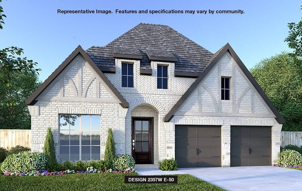 Extended entry highlights 12-foot coffered ceiling. Home office with French doors set at entry. Dining area flows into open family room with a wood mantel fireplace and wall of windows. Open kitchen offers extra counter space, corner walk-in pantry and generous island with built-in seating space. Spacious primary suite. Double doors lead to primary bath with dual vanities, garden tub, separate glass-enclosed shower and two walk-in closets. Private guest suite with full bathroom and walk-in closet. All bedrooms include walk-in closets. Covered backyard patio. Mud room off two-car garage.