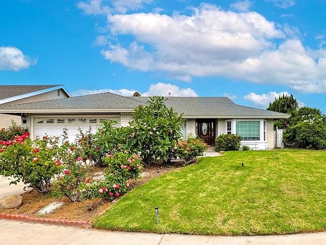 POPULAR PACESETTER! Rarely on the market, this is a great floorplan and home. Large step down living room with large window facing the front. Family room with brick fireplace is open to a remodeled kitchen with granite counters and newer cabinets. The 3 bedrooms are large and the family room has cathedral ceilings. Master bedroom bath has separate dressing area and there is a large shower in a private room. The yard is full of fruit trees, flowers and plants and their is a very inviting covered patio.