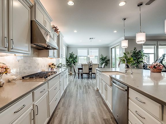 Absolutely stunning property will sell fast!!! Gourmet Island Kitchen with Quartz Counters, Marble Backsplash, Stainless Apps. Gas Cooktop, Wall Oven, Upgraded Cabinets with Mood Lighting. Open Great Room, Kitchen, Dining Concept. Living Area Features include the Latest and Greatest in Rigid Core Elements Flooring along with Crown Molding, Cased Windows, High Baseboards, Coffered Ceilings, and Extensive Can Lighting. Generous Master Bath with Clear Shower Enclosure. Master Closet has it's own entrance into Expansive Laundry. Oversized 11,000 Foot Lot is like a Resort with Sparkling Pool, Pavers, Extended Decking, Artificial Grass with Bocce Ball and Cornhole Areas, Tropical Landscape-TRULY Amazing! Extended Garage. New park and greenbelt coming behind this house. See Video link!