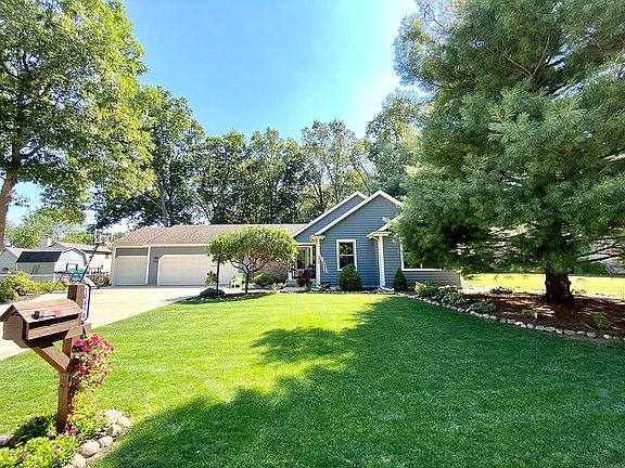 Beautiful ranch with finished basement and a 3 car garage nestled in the back of a desirable neighborhood with a private wooded lot in PHM schools! Completely updated inside and out! 2,527sq ft (total) includes 3 bds , 2 bths. Open concept with vaulted ceilings and wood burning fireplace. Kitchen features granite countertops, stainless steel appliances. Spacious master and bath have vaulted ceilings with large walk in closet and solid surface counter top. Fabulous finished basement with large great room and an additional room that could be used for crafts or office. Large storage room with floor to ceiling shelving. 3 car garage with built in shelving and additional ladder accessed attic storage. Freshly painted exterior and well manicured landscaping on a quiet street. Large fenced in back yard with fire pit. Quiet and peaceful setting awaits!! Roof 2011, heating & air 2011. BEAUTIFUL HOME IS MOVE IN READY! Buyers realtors welcome for flat 3K. By appointment only 574 276-2305