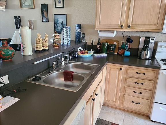 A unique and peaceful location and convenient to all amenities, shopping and businesses on the 200 corridor, this 2 bed 2 bath Patio Villa is an end unit, only shares one wall, and has an additional window in dining room. Gated Community with Community Pool, attached garage. Closed in and tiled lanai, Vaulted/Cathedral Ceilings, separate dining area, Private Driveway. The HOA includes basic cable, trash pickup, lawn maintenance, common area and exterior maintenance. Interion laundry. 24 inch tiled floors in living, kitchen and baths. A/C replaced 2 years ago. Recent dishwasher and garbage disposal. ADT security system, safe bolted to floor. Garage shelving included. Hot water softener, ceiling fans. Under cabinet window lighting, mature landscaping, and immaculately presented home. A must see!