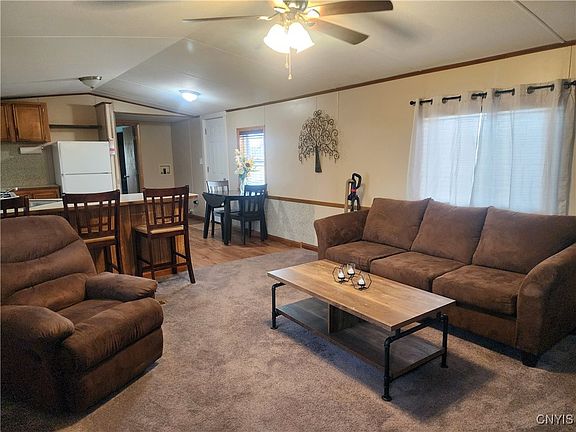 Immaculate, Updated Mobile Home on a Private Acre! Experience the joy of owning this meticulously renovated 14x70 gem. Every detail has been thoughtfully upgraded, from the plush new carpeting and stylish luxury vinyl flooring to the brand-new PEX plumbing, furnace, and hot water tank. The open-concept layout, complete with a breakfast bar, is perfect for family gatherings. Enjoy a modern bath, new interior doors, and fresh paint throughout. Stay comfortable year-round with new double-pane windows, a freshly coated metal roof, and 3" closed foam insulation. Plus, a 2-car detached garage and a new 1500-gallon water system. This move-in-ready haven is your chance to own for less!