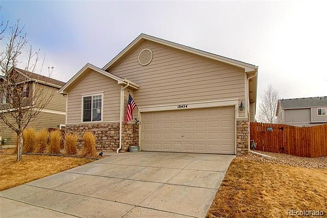 OPEN HOUSE SAT/SUN FEB 16 & 17TH 12:00 - 3:00. Welcome home to this well kept ranch style home. Walk up the covered front porch and enter the open floor plan. The family room features a warm and cozy fireplace. The eat in kitchen has recently refinished hardwood floors, 42\" oak cabinets and stainless steel appliances. The large master bedroom has an ensuite bathroom and walk in closet. Two more spacious bedrooms are on the other side of the home with a full bathroom between them. All bathrooms have been recently updated. Designer paint colors throughout. The basement is unfinished -- perfect for storage or finish it as you like! Enjoy the fenced backyard with raised garden beds, space for outdoor entertaining and yard galore for the kids to play. Minutes to the new Bison Ridge Recreation Ctr with pool, weight room & fitness classes. Close to DIA, downtown and local shopping. Newer roof.