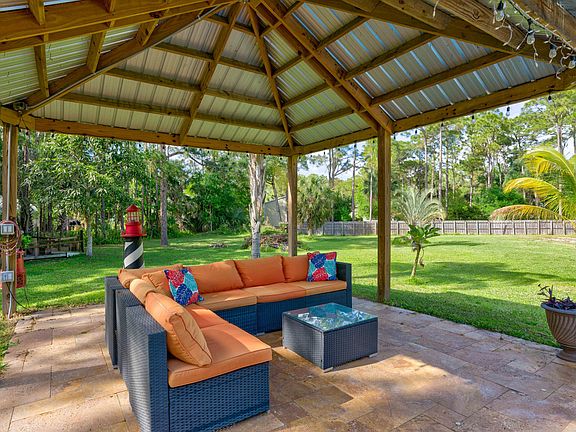 This very charming home in Jupiter farms once you open the front door, you'll see an expanded living room, dining room, kitchen area, beautifully remodeled with quartz updated cabinets. Three extra large bedrooms, a bonus room you could use for an office And a family room looking over the pool.The tropical pool area that has a waterfall and a 200+ square-foot gazebo is only six years old.This property has two driveways. The second driveway brings you to the back of the property where someone can build a workshop or a pole barn.