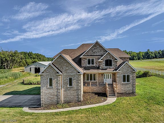 Hey horse peeps! This property is waiting for the right horses and people to bring it back to life! The beautiful brick and stone home on nearly nine acres features a huge great room with cathedral ceilings and views of the pastures to the rear of the property. Four bedrooms, three bathrooms and a first floor owners suite with full walk in shower bath, double sinks and a huge walk in closet. The bright & airy kitchen boasts lots of counter space, an island and open concept dining area, with sliders to the elevated rear deck. Head up the dramatic staircase with catwalk, and there are three bedrooms and one full bath. All of the carpet in the home is brand new. At ground level, you'll find a three car garage, large mudroom hall (perfect for coming in from the barn), bonus room with walk out to the cement patio and a recreation/living room. Lets get to the barn - six stalls, wash rack, utility room, two smaller stall areas for storage, stairs to a good sized hayloft, oh and the best