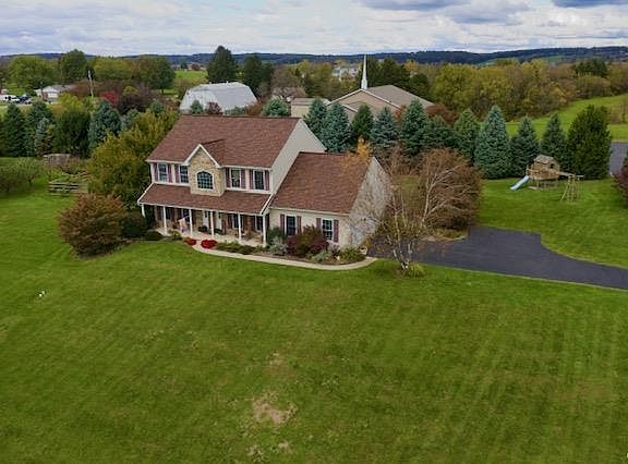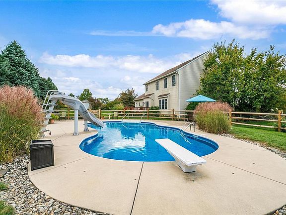 This beautiful move in ready 2-story sits on over 1.5 acres with spectacular views of the countryside & hills in the distance. The open foyer is flanked by the living room & dining room which led you to the kitchen. The 1st floor features beautiful hardwood floors. The kitchen features stainless steel appliances, an island with counter seating, butler pantry, and walk-in pantry. The sunny breakfast area includes sliders to an oversized deck which overlooks the fenced In-ground pool & a large flat yard. The family room is open to the kitchen, a back wall of windows and a stone propane fireplace. The laundry room and powder room are located off the kitchen and garage – a perfect location for your wet summer pool guests. Upstairs you will find a large Master Bedroom suite with sitting room, dual walk-in closet & en-suite bath with dual sinks, jetted tub and shower stall. 3 additional oversize bedrooms that share a hall bath finishes the 2nd level. The lower level is finished living space that includes an office or area for additional overnight guests, a huge recreational room plus an additional storage area. All this is located just moments away from parks and jogging trails, unlimited shopping venues and fantastic eateries, area hospitals and medical centers and easy access to all major thoroughfares leading to the Lehigh Valley. This is a fantastic opportunity. Schedule your appointments today.
