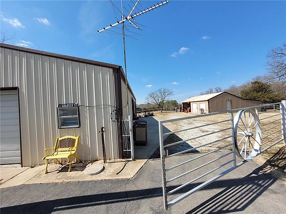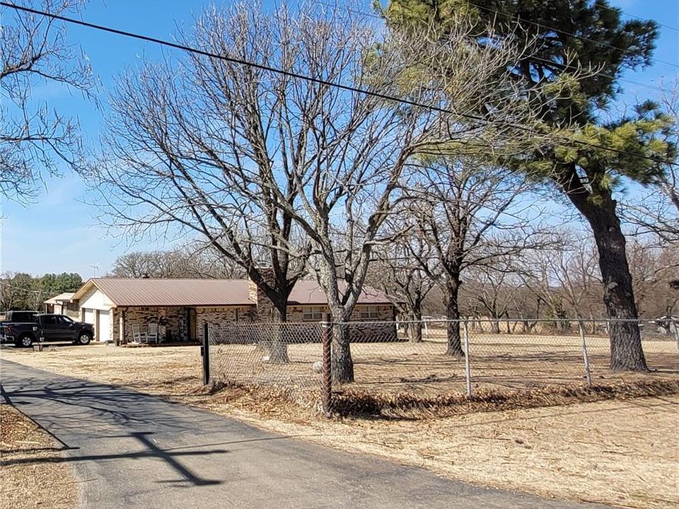 3 bedroom, 2.5 bath on 5 acres has 30x50 insulated garage/workshop has 3 bay doors, 1/2 bath, water, and wood stove. Fully fenced pasture including a pond and stable with electric. Cross-fenced for a dream garden with multiple water spigots. Screened porch, storm shelter, Multiple Mature Pecan and Pear trees