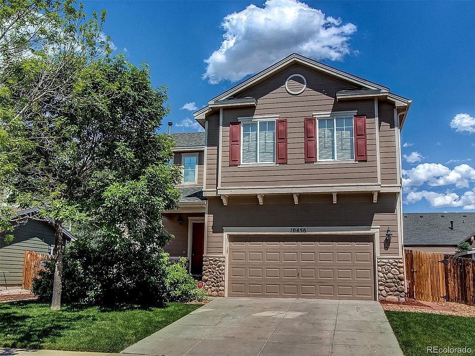 Talk about charming! This airy & light filled 2-story home has a newer roof (2018), newer central AC unit, a 2 car garage and so much more. The main level features tile flooring throughout, a spacious living room with a cozy gas fireplace surrounded by brick accent, a large open kitchen with white appliances, an eat-in dining area and a powder bathroom/laundry room. Upstairs you will find the expansive master suite with a 5-piece bathroom (complete with a soaking tub), walk-in closet, two generously sized additional bedrooms and a full bathroom. The unfinished basement is perfect for a home gym/game room or extra storage. Outside you will enjoy a large back yard a beautiful paver patio, sprinklers, a newly planted Aspen grove, sunflower patch, and many fruit trees (apple and peach). The mature neighborhood of Potomac Farms has convenient access King Soopers and Turnberry Marketplace, many restaurants or enjoy a short 10 minute walk to the rec center or Turnberry park. Be sure to check out the 3D walking tour!