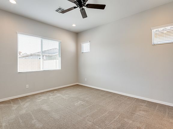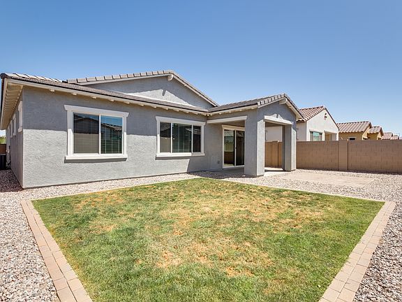 Enjoy residing inside this 3 bedroom, 2 bathroom home inside the highly sought after community, Eastmark! Entering the home, you will be greeted by the beaming high ceilings, fresh interior paint, tiled floors, tall baseboards, and a floor plan that will fit the whole family's needs. Headed down the hall, you walk into the open floor plan of the living room, dining area, and gourmet kitchen. With the tall cabinetry, granite countertops, over-sized island, stainless steel appliances, and pantry, you are set to entertain your guests seamlessly. The master suite has a stunning master bathroom with a large walk-in shower, double sink vanity, private toilet room, and a spacious walk-in closet that provides excellent storage! The additional bedrooms boast in space and natural lighting. Step outside to the backyard where there is excellent patio space with pavers and a large grassy area to play in. The tandem garage offers more storage space! Soak up the community features whether it is at the community pool, rec center, one of the community parks, or enjoying the walking paths! You will be centrally located near great rated schools, shopping centers, and excellent dining options!