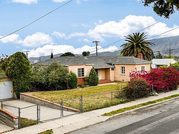 Discover this exceptional triple lot, ideally located on a coveted corner, with astonishing potential in the heart of Tujunga. Built in 1938, this charming home loved by the same family for over 60 years offers a rare opportunity to create your dream residence on a sprawling 15,626 square foot lot. Whether you envision adding an accessory dwelling unit (ADU), a junior ADU, expanding the existing structure, or starting fresh by building a brand new home, the possibilities are seemingly endless. This property impresses with abundant breathtaking views of the foothills and mountains. A gated front yard, adorned with flowering hedges, leads to a stately brick porch and into a home brimming with vintage charm. Inside, the formal entry features an art alcove and ample storage, opening into a spacious, step-down living room complete with hardwood floors, a cozy fireplace, and plentiful natural light. Nearby, there is a convenient 3/4 bathroom plus an adjacent bedroom. On the other side of the home, the additional 2 bedrooms share a full hall bathroom. This home is centered around the kitchen with an eat-in breakfast area, laundry closet, and access to an oversized covered balcony, perfect for dining al fresco. Adjacent to the kitchen is a versatile room that could be utilized as a formal dining room or family room with a wall of sliding glass doors that open out to the expansive balcony overlooking the massive backyard. There is so much space here, spanning across the in-ground swimming pool, paved sports court, and various trees including a bountiful grapefruit, pineapple guava, and even a quintessential Californian palm tree. Additional amenities include a long driveway for ample off-street parking, a detached 2 car garage, and a storage room under the balcony. Located between the San Gabriel and Verdugo Mountains, this property offers a serene small-town atmosphere with easy access to local restaurants, schools, parks, hiking trails, golf courses, and the 210 freeway for a quick commute into Downtown Los Angeles and beyond. Seize your chance to turn this unique Tujunga treasure into your ultimate dream development. This expansive property, nestled in a prime location, is an amazing canvas for realizing your vision of customization and expansion.