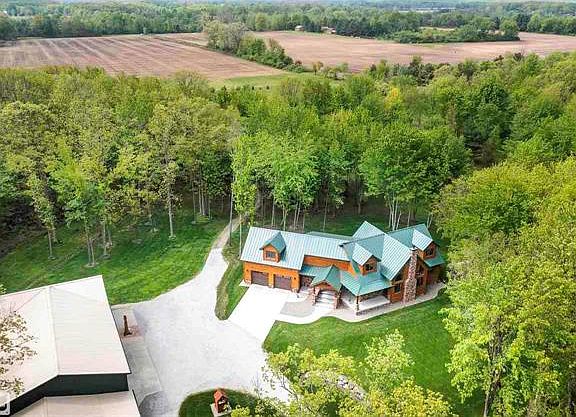 Custom built Log Home of your Dreams! With 4500 sqft of livable space and nearly 30 acres of property, this is your Up North Retreat without the drive! Main house is 2500 sqft, with Full Basement, 2 Bedrooms, 2 Full Bathrooms, Loft Area, and Cathedral Ceilings with a beautiful stone fireplace. First Floor Primary Suite Offers Walk in Shower, Double Sinks, Two Closets, and Heated Floors. This home offers a first floor laundry, security system with cameras and motion detectors, backup battery sump pump, heat pump, Anderson Windows throughout, and a 22kw Generac Generator. 4250 sqft Barn offers 2000 sqft of additional living space, including a Great Room, Full Kitchen, Full Bathroom and Laundry, and a Loft Area for accommodations. This living area uses Wood and Electric for Heat. The remaining 2250 sqft is heated and insulated, and features 220 electric, two 14 foot doors, and one 10 foot door so you can store all of your toys. This property is your perfect Outdoor Paradise!