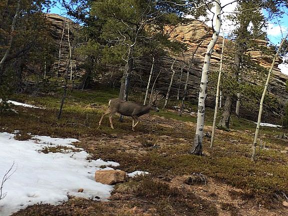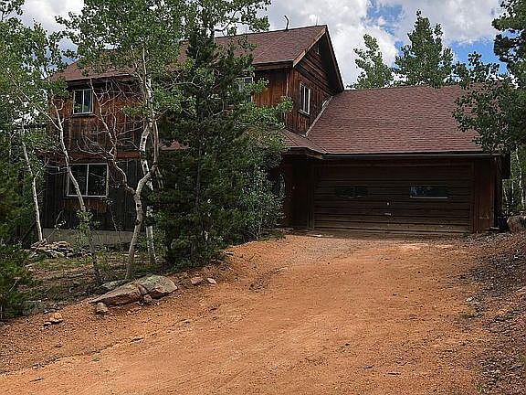 Charming Lodge like Home with 4.1 acres of Pine and Aspen forest and your own large rock outcroping to climb and explore. Great views and abundant wildlife. Master Bedroom and Bath on the main floor. Open area Living Room, Dining Room and Kitchen with vaulted ceilings share the moss rock Fire place. Upstairs are 2 bedrooms, a loft/office/craft area, shower and toilet area, and separate room with jetted spa that can be converted into another bedroom or office. Huge deck facing East and South. Includes Fridge, Stove, Oven, and Dishwasher. If you are seriously interested please text Becky at 303-514-9301 to set private hour showing, or send email to beckyd10@hotmail.com. The home is priced low so that there is room to update it into your very own mountain retreat. Thank you for your interest!