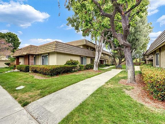 Live in the popular Fountain Valley Tiburon South neighborhood close to restaurants, 405 fwy access, shopping and Memorial Care Orange Coast Medical Center. This townhouse -style home is on a tree lined courtyard - enjoy the view from your living room or your own private, spacious balcony! This is the largest model, the Newporter with 4 good-sized bedrooms including the large primary suite with walk-in closet. The flowing floorplan downstairs has easy care wood type laminate flooring throughout the living and dining rooms as well as the really bright family kitchen area. From the kitchen, access the large rear yard patio space and the two car finished garage with storage too. Additional amenities include: central heat and air conditioning, dual pane windows, slideout pantry drawers. Area bonuses include: popular schools, entertainment, golf and tennis nearby with the beach a short drive away! Tiburon has 5 swimming pools, two club houses plus playgrounds and walking paths.