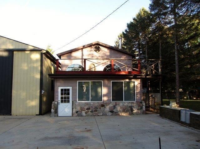''Eight Point Lake access''. Just a quick stroll to the waters edge. This unique place just waiting for the finish work. Skylights, lighting, woodwork, windows and many extras already done. A great place to entertain. Great deal of space in living area that opens to the kitchen. The upstairs loft would make a great rec room or family room. It can be shut off to heat only the lower level if you choose. Then open it up to entertain. It has a walk out door to the second story deck that wraps around the home and over to the pole barn's second story loft. Plenty of room in the pole barn for all your toys. Price is a great value. So bring your tools, toys and friends. Rails to Trails for snowmobiling is close by. Call today for this must see.