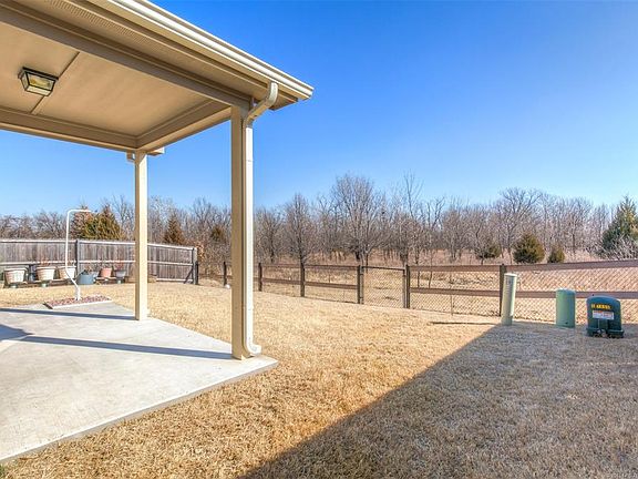 Private backyard backs to green belt at the back of the neighborhood. Jenks Schools, 4 bedroom home, Family Safe storm shelter. Fully fenced, gutters, minutes from the highway and from Tulsa Hills shopping. This home is clean and immaculately maintained.