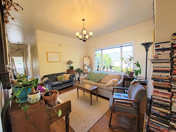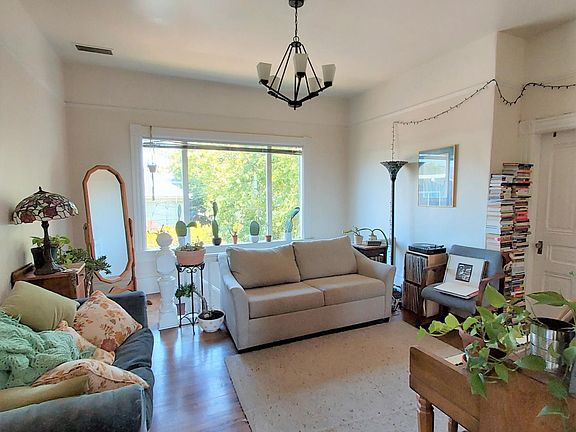 Beautiful, well maintained, 1450 square-foot five bedroom, two full bath apartment occupying the full the second floor of the building. Quiet and peaceful setting, called the "Sky Castle" by past residents. 10 foot high ceilings give a very spacious feel. Many large windows provide lots of natural light. Because of the height of the ceilings on both floors, all the views are high up in the sky, looking out on mature trees in the front, a large patio/yard in the back. Hardwood floors and tile throughout. All of the shared rooms are generous in size, and with the high ceilings, are difficult to adequately represent in the photographs. Big living room, big kitchen with dining area, large utility room. The large kitchen is separate from the living room. No sticking kitchen appliances in the living room corner and calling it a kitchen! It features granite countertops, a dishwasher, gas range, and lots of storage space, including a walk-in pantry. The utility room has a front-loading washer and dryer dedicated to the unit, which means no shared machines having other peoples' abandoned laundry. The apartment includes a large bicycle storage room with space for six bicycles and other larger items. It also has a large back yard and patio shared with other residents of the building, with lemon and Japanese maple trees, roses, and Spring wild flowers. Ashby BART station is 0.8 miles away a 15 minute walk. The 72R and other buses stop three blocks west. Very close proximity to UC Berkeley, the Temescal shopping district, Emeryville shopping district, Shattuck Avenue cafes, restaurants, and grocery stores. Minutes away from the 80/580/24 Freeway entrances. Available September 1. $4900/month rent; $4900 Security Deposit 1 year lease reverting to month-to-month. Owner provides garbage services, water and sewage. On-street parking. Minimum gross monthly income requirement of 3x the monthly rent combined among tenants; individual minimum gross monthly earned incomes of $2500 and credit scores of 675. Positive references. No pets. The building is a non-smoking environment. Upon approval of the application, the first month's rent plus security deposit must be received and cleared, and applicant(s) must obtain utilities in their name(s), prior to receiving the lease agreement. Please respond with your name, gross income, number of occupants, and desired move-in date.