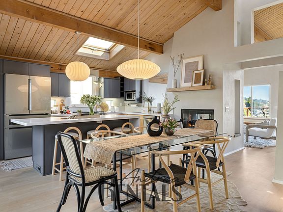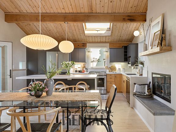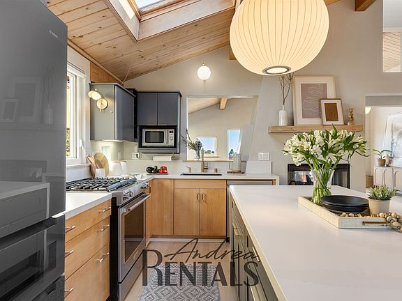 Stunning 4BR/4BA Custom Home in Claremont Hills Nestled in the picturesque Berkeley Hills, this beautifully designed 4-bedroom residence blends classic architecture with modern elegance. Soaring wood-beamed ceilings, Venetian plastered walls, and abundant natural light create a warm, airy feel throughout. The open living, kitchen, and dining area features French doors that connect seamlessly to both a private back deck and a serene front garden. A double-sided fireplace anchors the space, while a main-level ensuite bedroom and interior garage access allow for convenient level-in living. Upstairs, a second ensuite bedroom offers a private balcony and views of the space below. The lower level hosts a spacious primary suite with French doors to a flexible fourth bedroom ideal as an office, nursery, or studio along with a full bath, laundry, and workshop/storage area. A newly added guest space features a kitchenette, steam shower, built-in Murphy bed, and doors that open to the expansive multi-level deck with hot tub (deck is slightly smaller than photos and play area has been removed). Enjoy proximity to scenic trails, Elmwood shops and restaurants, top-rated schools, and the iconic Claremont Hotel all with easy freeway access to San Francisco. This Berkeley Hills retreat is the perfect blend of comfort, style, and location. Here are the features of this beautiful home: 2,951 living square feet 4 bedrooms, 4 bathrooms 5,250 square foot lot Built in 1995 Contemporary architecture High-end kitchen appliances Heating and cooling Ample natural light, with numerous windows, glass blocks, and skylights Vaulted ceilings on main floor South views of Downtown Oakland and the hills beyond Nest thermostat Double-sided gas fireplace Recently redone Venetian plaster walls (2022) Hot tub Built-in laundry shoot Guest bathroom suite with Mr. Steam sauna LG Signature washer and dryer Two car garage with storage cabinets Additional off-street parking in front of garage Tesla car charger This one-of-a-kind home is available for a 12-24 month lease. Available now! Small pet considered with additional deposit. Tenant pays for all utilities. Stevie DeMott AndreaRentals: A rental concierge for Bay Area owners and renters 12-24 month lease. Small pet considered with additional deposit. Tenant pays for all utilities.