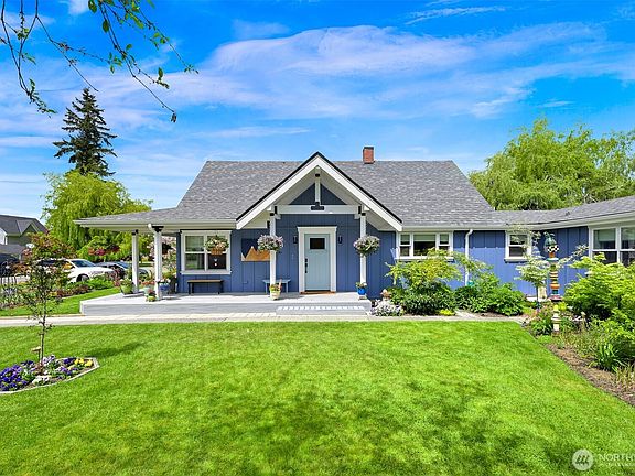 Embrace the perfect blend of tradition and style where every detail has been thoughtfully renewed to create a seamless living experience. This home offers the convenience of main level living, highlighted by a spacious primary suite complete with an ensuite bathroom featuring a soaking tub and a large walk-in closet. The kitchen is equipped with stainless steel appliances, butcher block countertops, and a stunning tile wall backsplash. Outside, a versatile outbuilding and carport provide ample storage and a flexible space perfect for a home gym. Enjoy the charming wrap-around porch and mature landscaping. Nestled within the vibrant Salishan neighborhood renowned for its excellent walkability to the waterfront, restaurants, and shops.