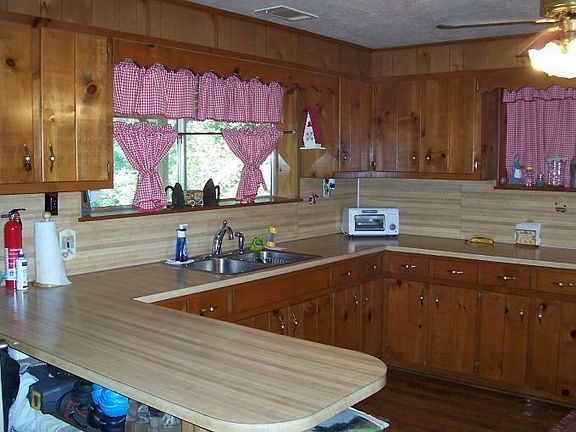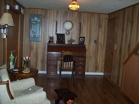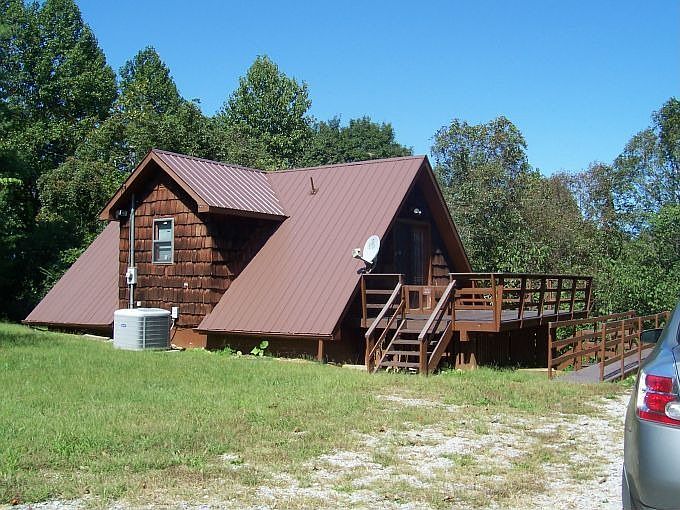 Would make a great starter home for young couples or a vacation home for visitors to East Port Marina on Dale Hollow Lake. There is a large barn that could house boats and extra vehicles, or toys for the lake. Also, an extra storage building for overflow from the house or lawn equipment. There is one bedroom on the main level with a full bath and the kitchen is located in the basement area that opens up to a covered porch that is acroos the legenth of the house. CH& A is installed and also a wood burning stove with lots of wood already cut and available. Also, another full bath.