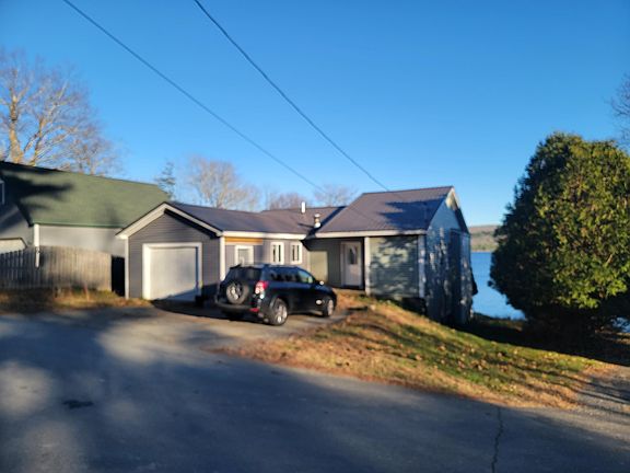 Brewer Lake Home with water frontage. Has a sandy beach. Home was built in the 90's and currently has metal roof and vinyl siding. The daylight basement has 3 bedrooms and a full bath. The upstairs living space has kitchen with recessed lighting, and great room with vaulted ceiling. The garage is attached with 1 space. The 4-bedroom septic system is located across the street and is concrete chambered system and can be used for additional parking. The HWBB heating system is powered with a Pensotti boiler. There are great views from all rooms overlooking the water. Water is great for swimming, boating, kayaking, etc. and a public boat landing at the end of the lake. Only 15 minutes to Bangor or 20 minutes to the BIA allowing an easy commute. Clear cold-water lake with both warm and cold-water fisheries including, Perch, Salmon and Bass. ITS (Interconnected Trail System) for snowmobilers is nearby. Property being sold partially furnished and in 'As Is' condition.