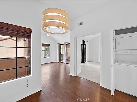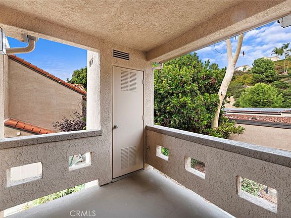 Enjoy the relaxing sounds of the community waterfall and streams from this upper level corner unit. Situated near the pool and near the back of the complex, this location is extremely desirable. This desirable home offers ample living space and a spacious patio and is the largest one bedroom floor plan. Tall windows and vaulted ceilings in living room provide tons of light and sense of space. Vinyl flooring in living room, dining area and kitchen adds continuity to floorplan. Upgraded kitchen features newer cabinets, granite countertops and stainless steel appliances. A stacked washer/dryer is included. Sliding glass doors to patio from both living room and bedroom allow seamless inside/outside living. Oversized bedroom and huge walk in closet are surprising additions to this home. Sliding glass doors to patio allow seamless inside/outside living. Newer bathroom vanity and tons of storage add additional value. Relax on your patio and take in the sounds of the water feature and views out to the hillsides. One car garage is situated close to the property. Vista Pacifica is a sought after community with access to two pools plus the beautiful streams, waterfalls and community walking paths. Association offers on-site RV/boat parking (if available). Just a short drive to award winning beaches and the downtown Village with shops and restaurants, the San Clemente lifestyle awaits.