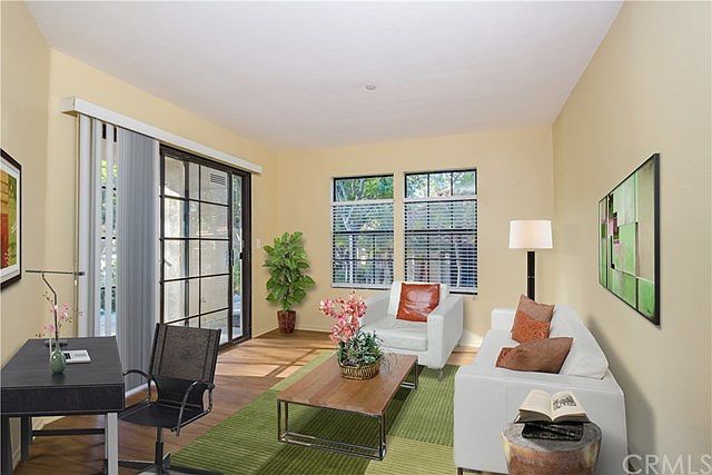 The owner now has a signed lease agreement. There are no showings. This one story, ground level, end unit condo is perfectly located just a few minutes from the beach. With ample windows and glass doors, the interior is bathed with abundant natural light. Both the generous-sized bedroom (which includes a walk-in closet) and living room have sliding doors that open to the intimate patio, from which you can hear the soothing sound of water cascading through the nearby community stream. Want to go for a swim or enjoy some relaxing time in the spa? In less than one minute, you can walk to the exceptionally beautiful pool and spa, which are surrounded by a picturesque rock-filled stream. Upgrades in this home include newer tile and high-quality vinyl plank wood-like flooring. (Vinyl plank wood is superior to and more costly than wood laminate). The water heater was recently replaced. Includes inside washer / dryer hookups. Tenant gets one parking space in addition to the one car garage. This is a well-maintained community that anyone would be proud to call home. Don't let this gem be the one that got away!