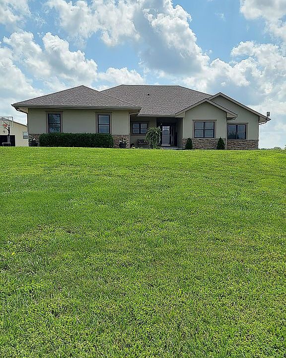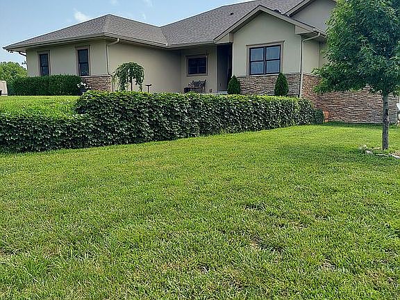 Quality custom built home sitting on 7.5 acres on all paved roads. Ranch with fully finished walk-out basement built in 2007. Has 5044 square feet and 9 foot ceilings. 4 plus bedrooms, 4 bathrooms, office, game room, media room, bar, sunroom, dining room, exercise room, storm shelter room and more. Master bedroom has 2 closets. Pella windows and doors with built in blinds throughout. 2 inch stucco on exterior. 400 amp service in house and plug for back-up generator on exterior. New impact resistant shingles in 2017. Custom solid cherry doors, vanities and cabinets and 4 inch cherry trim throughout. Hickory wood floors in kitchen and dining room. Oversized 3 car garage with trench drains in floor. Built in firepit with stamped concrete surround. Includes 40’x72’ heated shop with 6” reinforced concrete floors with trench drains, half bath plumbed for shower, 16 ft sidewalls, fully insulated, office space, refrigerator, two 12’x14’ insulated garage doors with openers and one 12’x12’ insulated door, 12 ft covered overhang with concrete, 6” gutters with 2 ft overhang soffits Pre-approved buyers only for scheduled appointments.