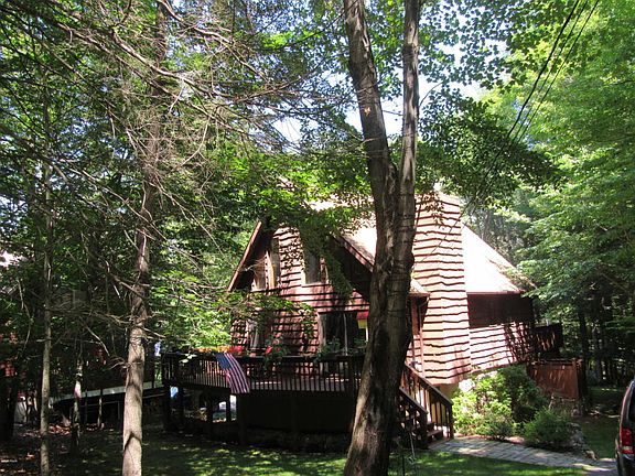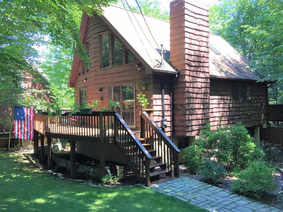 Rustic Comfort! Move right in to this completely updated home. Enough room to sleep 10. Large wrap around deck. Covered patio with stone fireplace. Outdoor shower. Partially furnished. Modern kitchen, hardwood floors, lake view, short walk to Marina, shorter walk to Lake Wallenpaupack swimming dock, picnic area and pool. All lake toys included including canoe and kayak. Golf cart too! Boat slip available thru association.