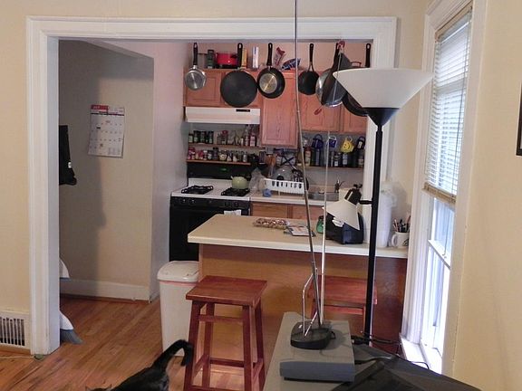 Victorian house that has an apartment on each floor. This is a 3 bedroom 2nd floor flat available August 1st. Hardwood floor throughout the apartment except for the bathroom. The kitchen includes a built-in dishwasher gas stove and a frost-free large refrigerator separated from living room by a breakfast bar/table. Great light, windows upgraded with double-paned windows. Bathroom with tub/shower combo, toilet, and pedestal sink. One assigned parking spot is included with the apartment if you have a car. Additional parking may be available. 3 sets of washers/dryers in the basement can be used for $20 per person per month. We are pet friendly but charge a monthly pet fee - 40/1, $60/2. I do not rent apartments sight unseen. I'm not a management company, so I'm the contact person. Please call me with questions and to set up a showing of the apartment. If I don't answer, leave me a detailed message and a phone number and then I will follow up and call you back. Thanks! Owner pay gas to stove, gas heat and water/sewer charges. Resident pays for electricity to apartment. One assigned parking spot included with the apartment, if resident has a car.