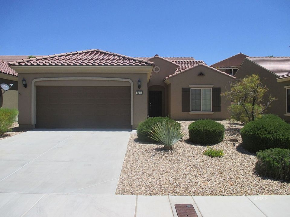This is the very popular Laurel model, located in the Split Rail community in Sun City Mesquite. This very clean, gently lived in home features 1571 SF, 2 BR and a den, 2 BA, and an open concept living area. Granite countertops, stainless appliances, tile and laminate flooring, storage cabinets in the garage, water softener, covered patio, and beautiful landscaping make this home an excellent value. Enjoy all the amenities of living in Sun City Mesquite; indoor/outdoor swimming pools, golf, tennis, pickleball, walking trails, and varied activities every day in the gorgeous Recreation Center.
