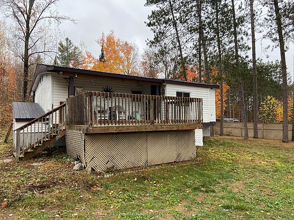 Located a short distance to Minden on a year round municipal road and an oversized lot in Lutterworth Pines, this corner property backs on a forest. Serviced by a municipal water system this home has two bedrooms, a living room, kitchen, dining room and bathroom on the main floor. The 800 sq. ft. partially finished basement has potential for an in-law suite or an apartment. A workshop/storage building is an added bonus to this modular home. The property is being sold "as is/where is" with no representations or warranties.