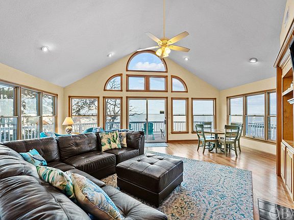 Escape to paradise in this breathtaking soundfront retreat hidden away in the upscale Corolla Light Resort community. Everyone will see the beauty of this property long before passing through the doors thanks to its ample decks and waterfront location. Once inside, you will quickly appreciate the top-floor living area's generous amount of windows, which offer amazing water views and spectacular sunsets from the living room, the dining room, and the sunroom. The open concept kitchen shares these same wonderful views as well as providing ample work space, beautiful granite counters and a center island with bar seating. This kitchen is made to cook and entertain at the same time. On this floor, there is also a half bathroom and the primary king sized bedroom with amazing water views, deck access and en-suite bath complete with whirlpool tub. On the second floor, there are four en-suite bedrooms all with spectacular water views; three having king beds and one with two twin beds. From this mid-level, you can wander outside onto the covered decks to relax and enjoy the fresh air, shade, and hot tub. When entering at the ground floor level, you will find one nicely sized king bedroom with water views and ground level access to the back yard or pool area and one bunk room with its own TV/gaming room. This floor also provides a full bathroom, a laundry room and a theater with abundant seating! The outdoor pool and hot tub area is the perfect place to unwind after long day at the beach. This property also has great access to the soundfront boardwalk and is just steps away from the water launch if paddle boarding or kayaking is something you enjoy. The Corolla Light shopping complex, the Currituck Lighthouse, Whalehead Club, and Corolla Village are also nearby, offering fun outings and great food for everyone in your group. This is a fantastic rental property with a proven rental history, making it a great investment if you are inclined to share your paradise getaway. Corolla Light is by far the most amenity packed community you will find on the Outer Banks. It offers guests and owners their choice of 5 pools, an indoor fitness center, lighted walking paths, tennis courts, a seasonal trolley with stops that takes you right to the beach, and even an oceanfront complex with basketball courts, playground, shuffleboard, oceanfront pool, and refreshment area. You will always have something to do in Corolla Light! Be sure to view the 3D virtual tour by clicking the link or cut/paste into your browser:https://my.matterport.com/show/?m=VW8cCsNyHtm&mls=1