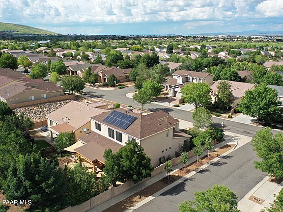 Welcome to this light-filled 4bdrm/4bath Stoneridge Home which feels tucked away, yet close to everything! Indoor/outdoor swimming pools, spa, tennis/pickleball courts, a large grassy park, walking trails and Golf Course. Spacious floor plan with sunny front room/formal dining area and an open concept kitchen/living room with breakfast nook. Main floor Master Suite with walk-in closet and downstairs laundry. Upstairs are 3 brms/2 baths/Bonus Room. Outside are garden beds, fruit trees, a pond and covered patio. Solar array transfers. Dual zoned HVAC and New Water Heater.Two car garage with storage and workshop. Near to shopping/restaurants/parks. 20 minutes to downtown Prescott. Motivated Sellers due to a job change out of state. Come check out this lovely home and bring your best offer!