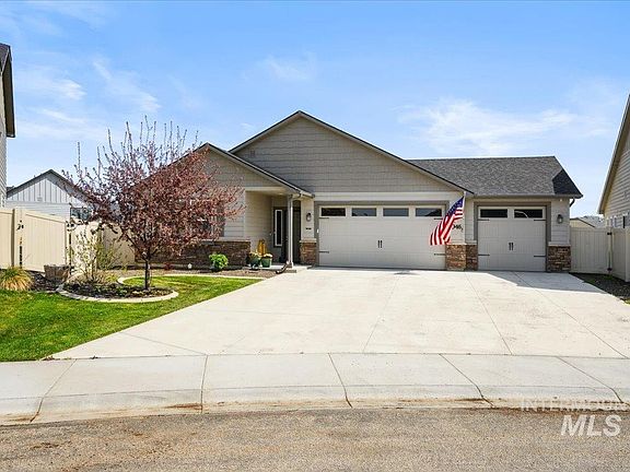 Charming single-level home that offers both space and comfort with 4 bed, 2 bath and an option of a bonus room with French style double doors. The open kitchen has ample counter space with beautiful granite counters with the added appeal of an optional desk or beverage center. There is plenty of cupboard storage along with a spacious pantry and a breakfast bar. Enjoy the open living area with natural light from the windows and the adjoining dining area that complete this eating and entertainment space. The spacious and private master suite boasts a dual vanity bathroom, separate shower and a large walk-in closet. Great sized backyard with vinyl fencing and cement curbing with landscaping boarding the perimeter. Enjoy the oversized back patio which is great for entertaining! Ample 3-car garage that offers plenty of storage. Move in ready! Close to all the shops & restaurants in Kuna, Discovery park, Falcon Crest Golf Course & easy trip to the freeway!