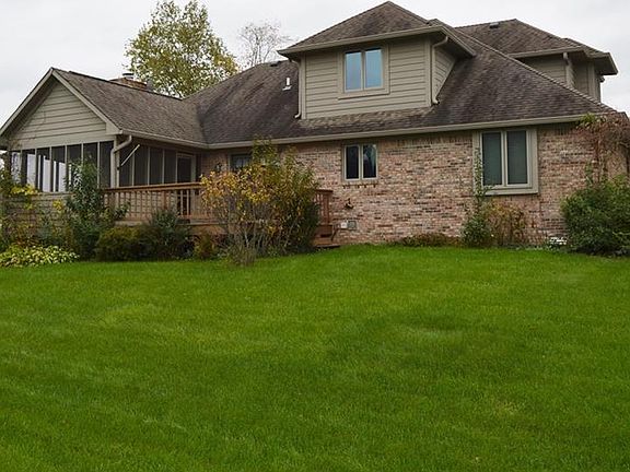 Custom Built in Greenwood Commons -Awesome 4 bedroom, 2 full/2 half bath brick home on corner lot offers abundance of living space w/ updated TRANE HVAC w/electronic air filter, Sun Windows, sump pump, water heater. Finished basement boasts a big screen movie wall with projector, pool table and pool equipment (all stay), bar area and storage room. The resident cook will like the cherry cabinetry, center island/breakfast bar with jenn aire type stove top and built in oven/plus microwave. Home also has formal dining rm, office, great room with fireplace and spacious bedrooms with big walk-in closets. A screened in porch and deck space you will love. Crown molding, stained wood work and master on main! This is a home to consider! 3600 + sf!