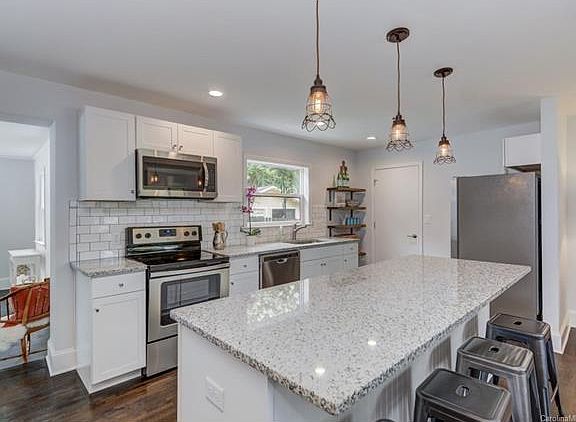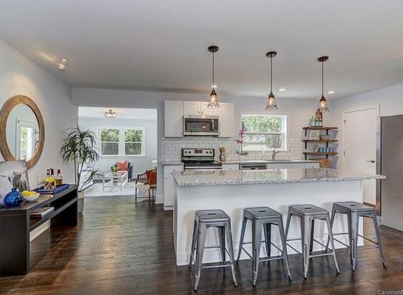 Completely renovated mid-century brick ranch in HOT Eastway Park! Bright open floorplan with hardwood floors throughout. Island kitchen features granite counters, new cabinetry, stainless steel appliances and subway tile backsplash. Walking distance to the Evergreen Nature Preserve and a short bike ride to Plaza Midwood, Restaurants & Shopping! Designer lighting & paint, tankless hot water heater, brand new roof and new electrical panel.